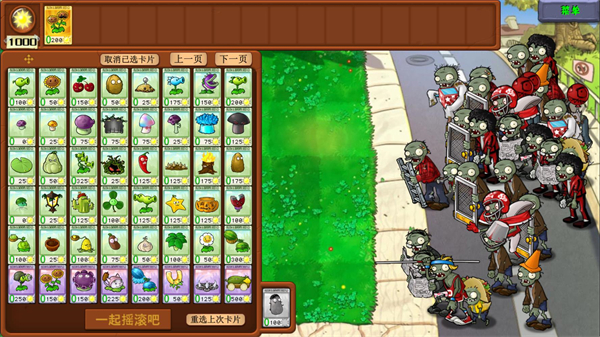 2、在关卡准备界面,根据当前关卡特性选择合适的植物卡组,确认无误后点击“一起摇滚吧”开启战斗。