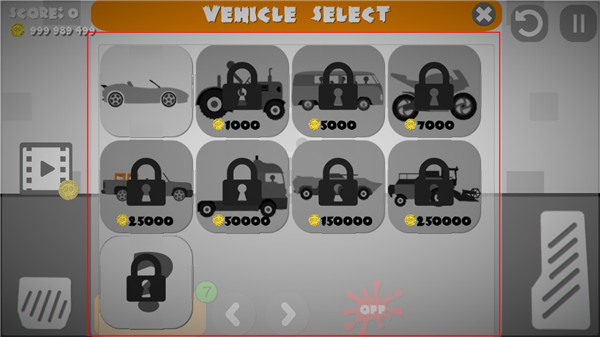 2. 点击黄色按钮可更换车辆款式,若金币充足,优先选择破坏力更强的载具: