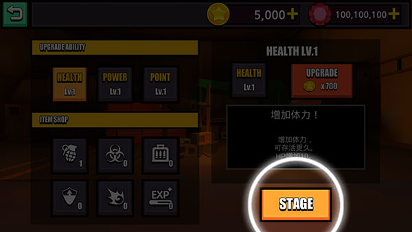 3. 进入关卡前,建议先购买合适的增益道具(如Buff或补给),以降低初期通关难度,准备就绪后再次点击STAGE进入战斗。