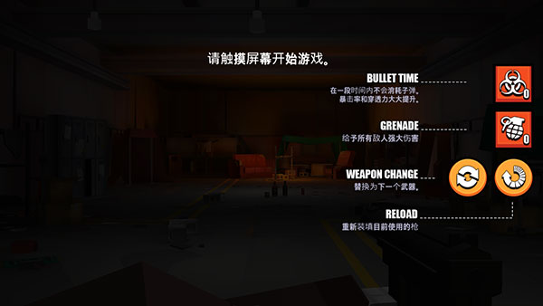 7. 教学后期将解锁四个关键功能按钮:子弹时间Buff、手雷投掷、切换武器、更换弹匣,熟练掌握这些操作是制胜关键。