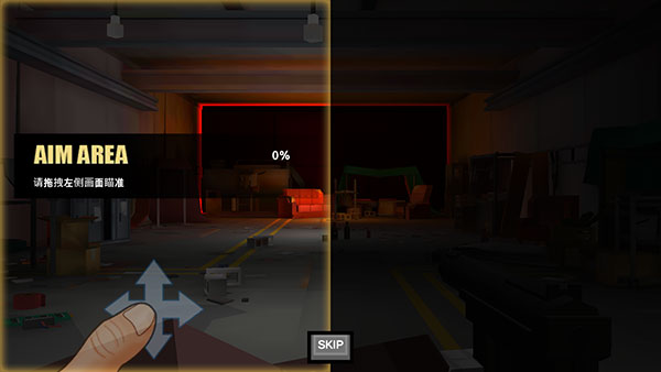5. 战斗中,通过拖拽左侧屏幕区域控制瞄准方向,教学关卡需将瞄准进度条充满至100%方可继续下一步。