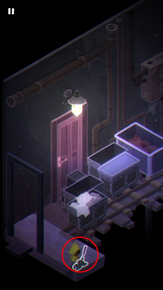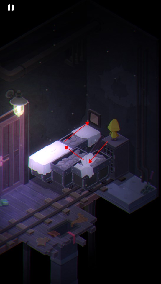 4. 返回取钥匙的房间,打开房门进入下一场景;拉动右侧开关使轨道车启动,待其行至尽头后再次拉起开关复位。