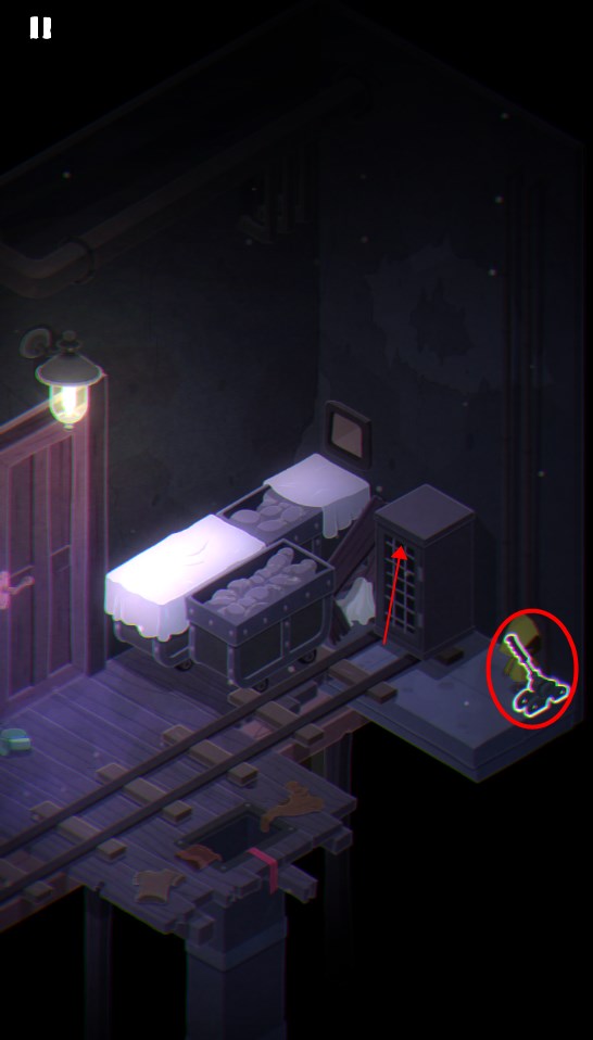 1. 点击画面中标注位置,降下楼梯以开启通路。