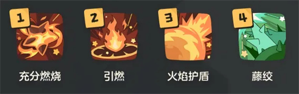 技能推荐:充分燃烧、引燃、火焰护盾,第四技能可选酶浓度调整(防御回血)或藤绞(攻击回能)。战斗开局先手引燃,配合充分燃烧使敌方灼烧伤害翻倍并叠加百分比伤害,无论是打BOSS还是PVP均为T0级存在。