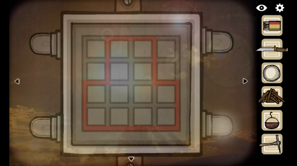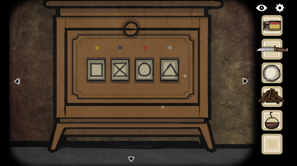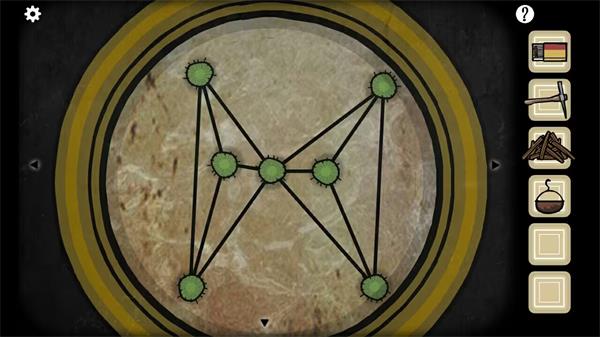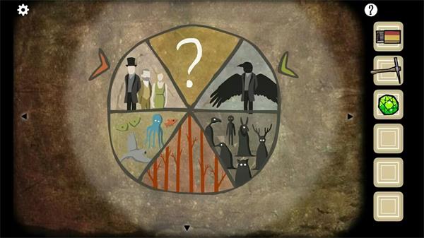 14. 前往对面墙面,完成图形匹配谜题:依据石墩上的图案,将柜子上对应的图形移至石墩位置。