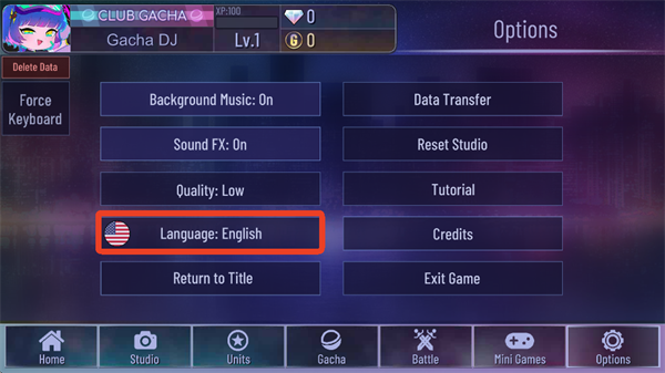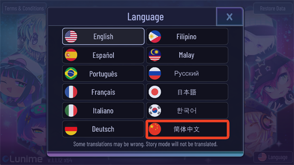 3、若已进入游戏,可点击右下角Options(设置),再进入Language选项,同样选择简体中文应用即可。