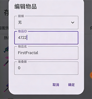 点击任一物品,即可修改其数量、前缀属性,或直接删除;亦可新增任意游戏内物品。