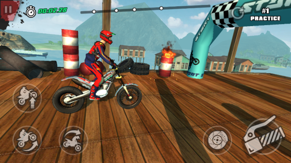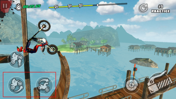5. 使用屏幕按键控制摩托车前进、后退、加速及重心调整,施展各类骑行技巧。