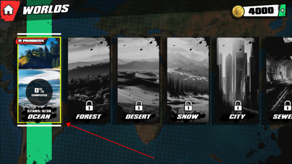 2. 进入场景选择界面,浏览不同主题世界。
