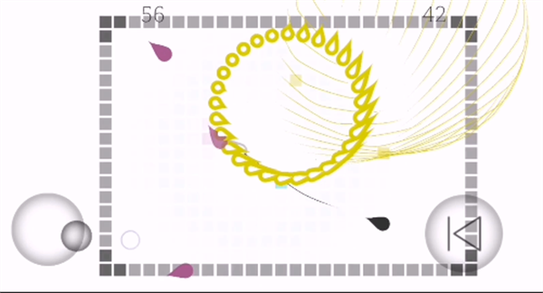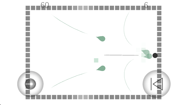 1、通过左侧虚拟摇杆控制黑色水滴移动,避开其他颜色水滴的触碰。移动过程中会留下轨迹线,点击右侧回溯按钮即可立即回到2秒前的位置。在躲避的同时,引导相同颜色的敌对水滴相互碰撞,即可将其消除。