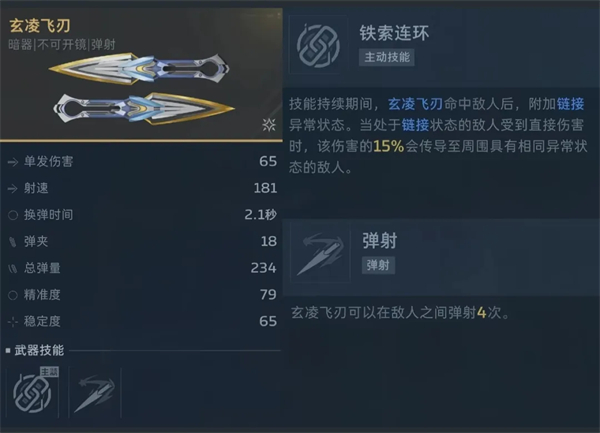 开创暗器武器先河。主动「铁索连环」可链接敌人传导15%伤害;被动「弹射」支持飞刃在目标间弹射4次,实现高效群攻。