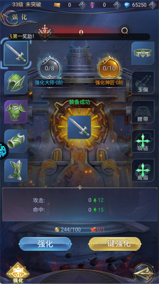 优先对武器、项链等输出类装备进行强化,集中资源提升攻击、命中等关键属性,最大化战斗收益。