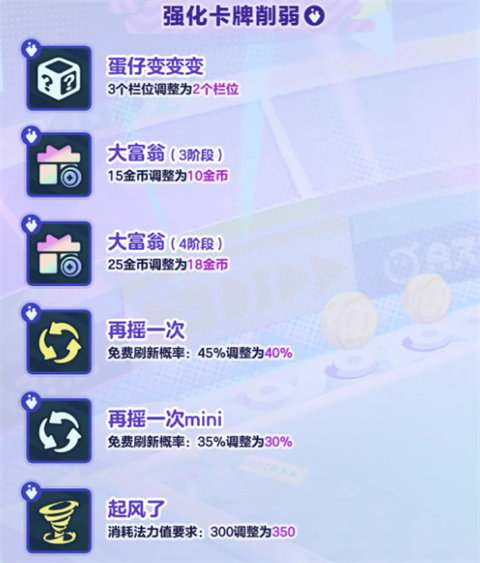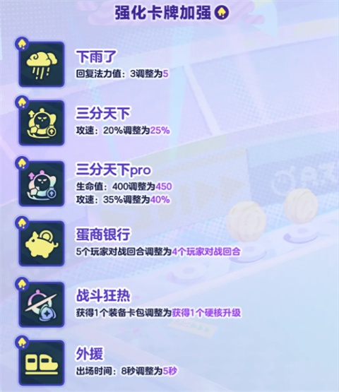 包括装备、强化卡牌及双人强化卡牌的多项调整,确保竞技公平与策略深度。