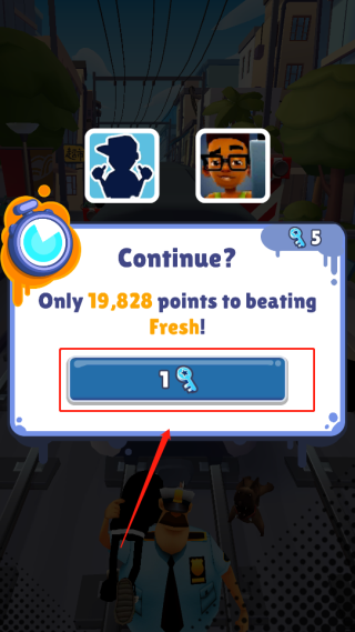 4、若撞上障碍或被警察追上,游戏将结束;此时可使用“钥匙”立即复活,继续挑战高分。