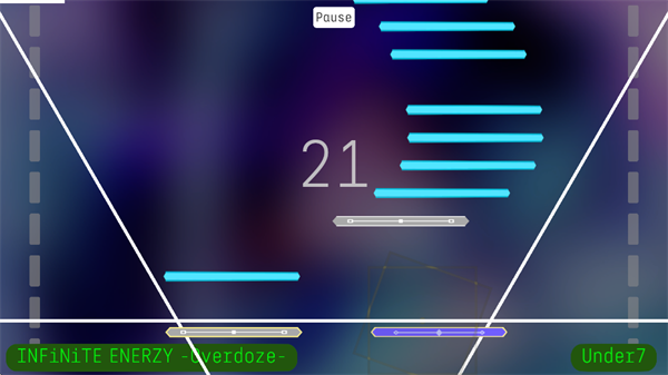 2、Drag(拖动):浅蓝色触碰型按键,只需在音符接触判定线期间保持手指按压,无需滑动即可持续得分。