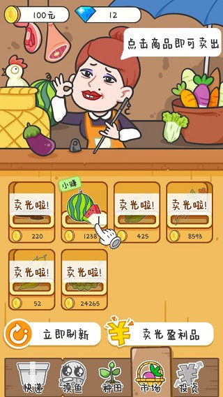 3. 收获后前往“市场”界面,点击待售商品即可一键出售,快速赚取你的第一笔启动资金。