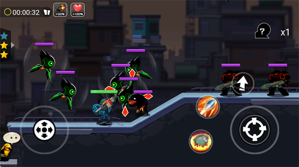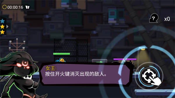 射击操作:点击右侧开火键即可进行连续射击,长按可维持持续火力输出,有效清理路径上的敌人。