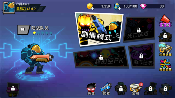 初始角色为陆战队员,通关后可获得英雄碎片。集齐足够碎片即可进阶,显著提升攻击、生命、暴击等核心属性。