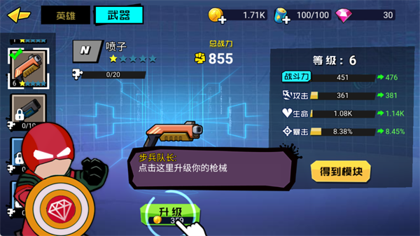 从基础陆战队员起步,通过挑战关卡收集英雄碎片,逐步进阶解锁更高阶形态,全面提升攻击力、生命值、暴击率等关键属性,打造属于你的终极火柴战士。