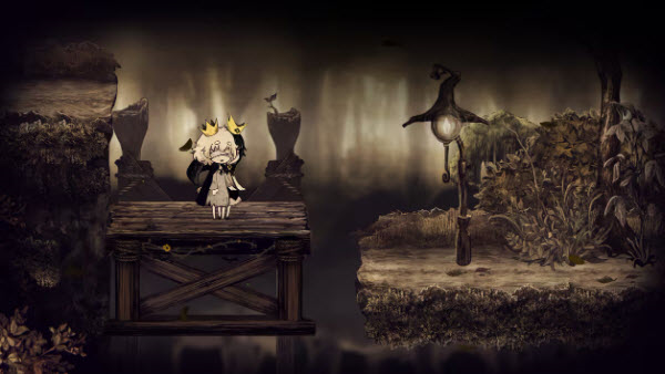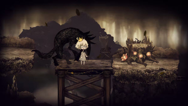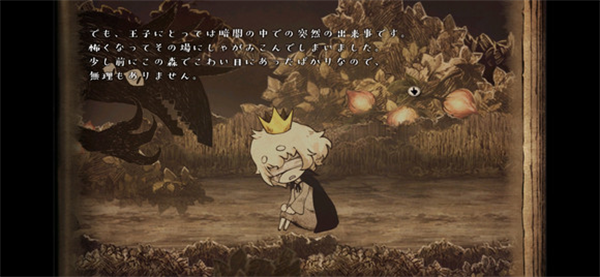 游戏舞台设定于幽暗而神秘的禁忌森林,玩家需在“狼”与“公主”两种形态间灵活切换,应对不同挑战。(注:游戏主菜单与选项界面为日文,剧情文本为繁体中文。) 狼形态力量强大,可攀高、破障、击退怪物;公主形态则温柔细腻,能引导王子同行、协作解谜。在这场交织着欺骗与守护的旅程中,玩家将体验一段凄美动人的黑暗童话。