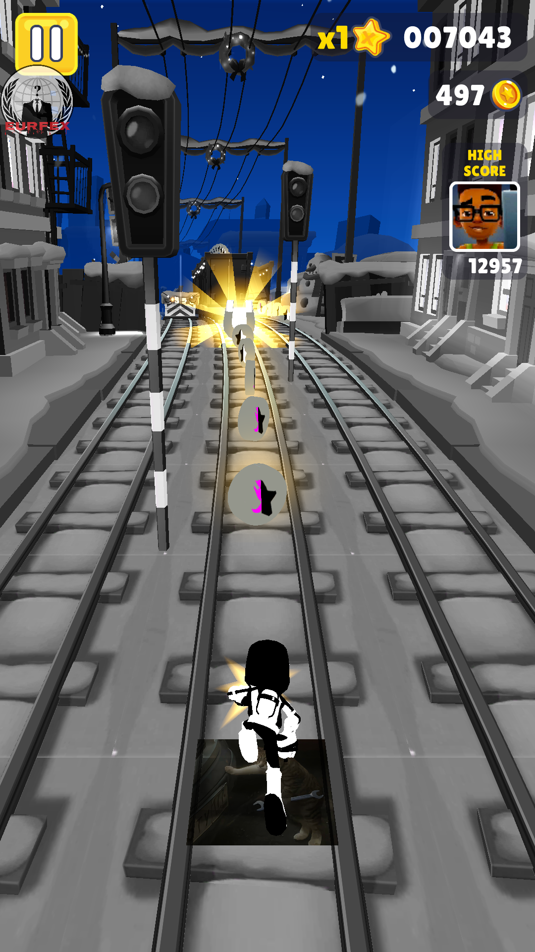 3、场景丰富,视觉焕新:除经典地铁轨道外,还融合多种主题地图元素,配合全新美术风格,带来耳目一新的跑酷环境。