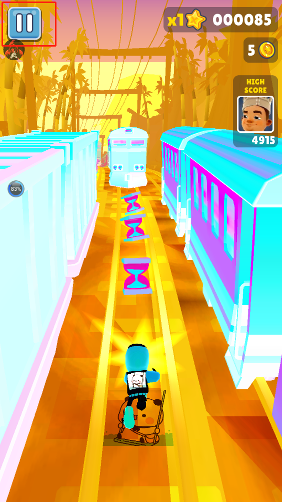 有地铁也会有隧道,中间有一根柱子,左右两边无规律会有火车奔过来,这个时候就要考验玩家的应变能力。在前期的时候过个隧道表示毫无压力,后期30W分过后经常有玩家出现手指反应不及时然后被撞死的现象。对于过隧道的技巧,眼疾手快是前提,关键是心态要放平静,这样才不会手滑。