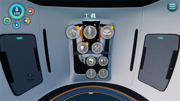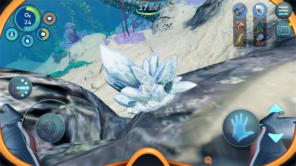 1. 游戏初始位于一处冰川内部,首先熟悉基础操作:移动、跳跃、交互。左上角显示角色状态(氧气、体温、生命值等),右上角可查看物品蓝图与任务日志。
