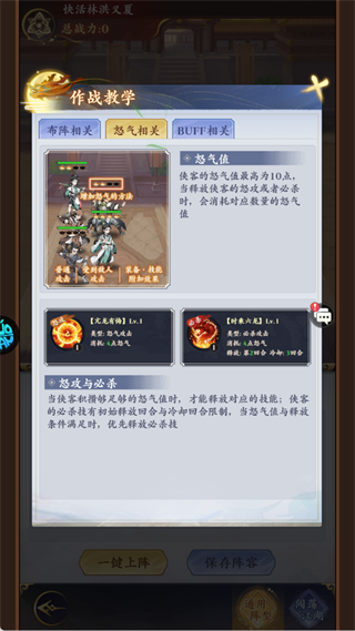 每位侠客怒气上限为10点,通过普攻、受击或装备效果积累。怒气用于释放强力怒攻与必杀技,是关键时刻翻盘制胜的核心手段。