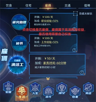 7、收入稳定后可考虑开启“雇佣”系统。该系统属高成本高回报模式,开启数量需根据资源状况谨慎规划