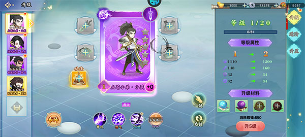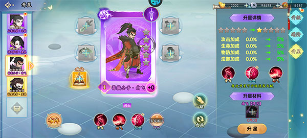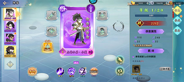 4、升星增强实力:投入资源对侠客进行升星,显著提高基础数值与技能效果。