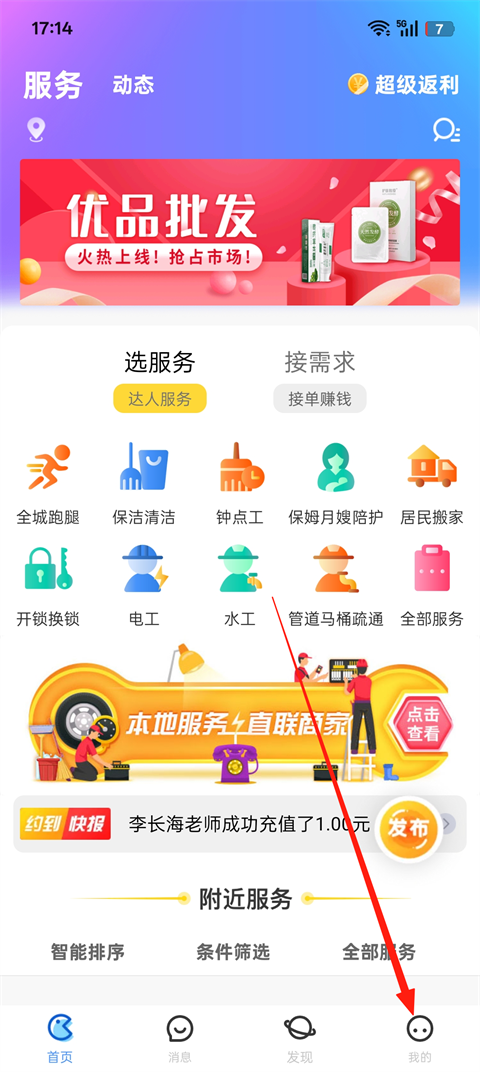 1、整合健身指导、塔罗占卜、美容护理、学科家教、法律咨询等100+类高频生活服务,用户发布需求后,系统将实时推送附近可接单的服务者,响应迅速。