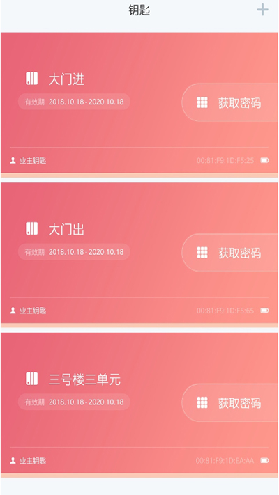 2. 靠近目标门锁,点击App内“申请钥匙”按钮,填写相关信息后等待物业审核;