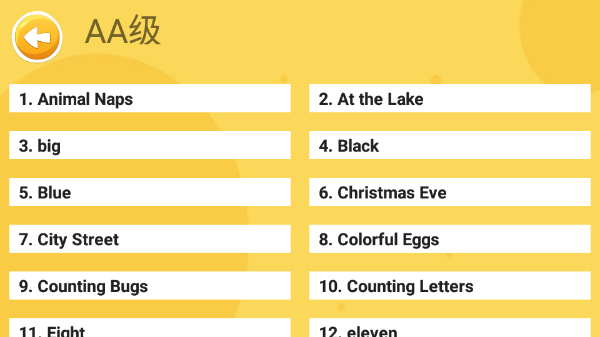 3、【AA级】内容聚焦基础词汇,单词按认知逻辑编排,难度逐步递增,家长可自由挑选适合当前学习进度的词条进行练习。