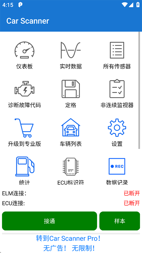 汽车扫描仪(Car Scanner ELM OBD2)是一款功能全面、操作简便的汽车诊断与监控工具,旨在帮助车主深入了解爱车状态,及时发现潜在问题并获取维护建议。软件内置丰富数据库,涵盖各车型、年份、发动机型号的详细参数与故障信息,对车主而言极具实用价值。Car Scanner APP支持安卓与苹果手机,提供实时观察汽车参数、读取及清除故障码等功能,帮助用户轻松掌握车辆健康状况,快速定位问题。无论是日常检查还是故障排查,Car Scanner都能成为车主的得力助手,让车辆管理更高效便捷。