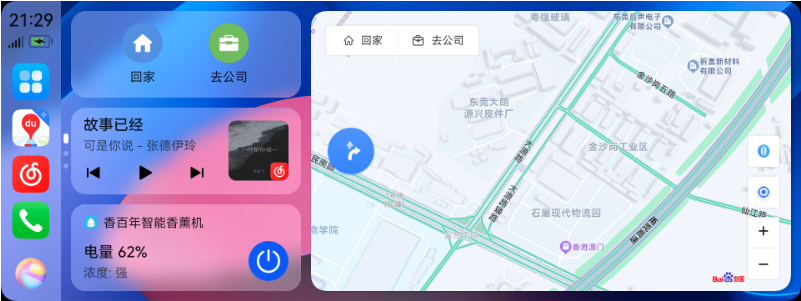 - 导航:在车机上直接使用手机中的高德地图、百度地图、花瓣地图等导航应用,路线清晰、操作流畅。