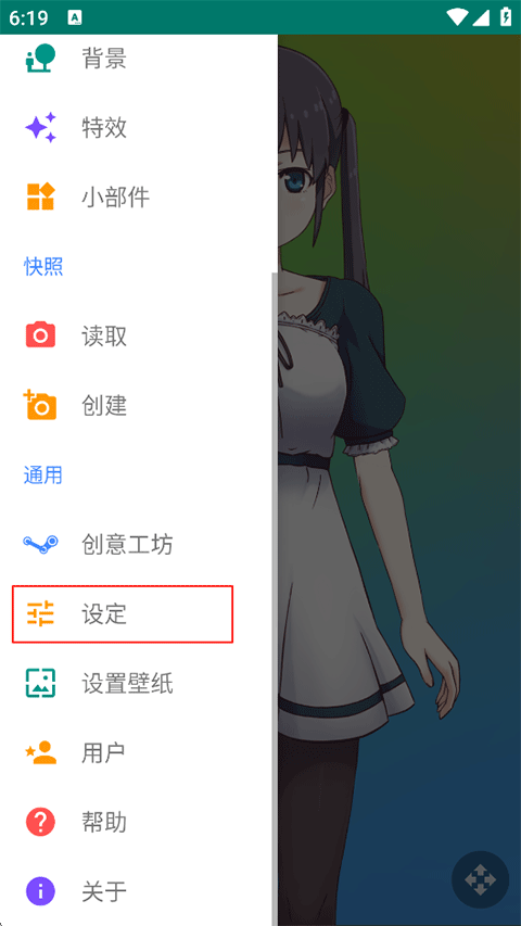 - 在弹出菜单中点击【设定】;