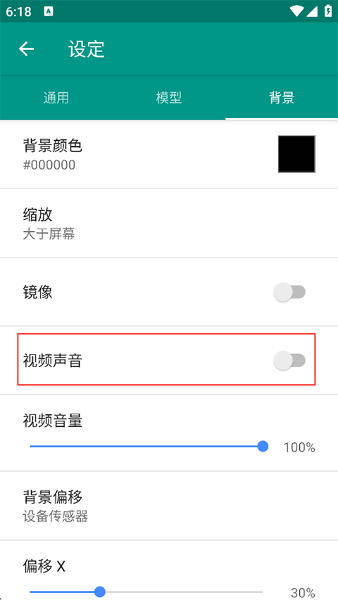 - 如需播放视频背景中的音频,请进入【背景】设置页,开启【视频声音】右侧的开关即可。