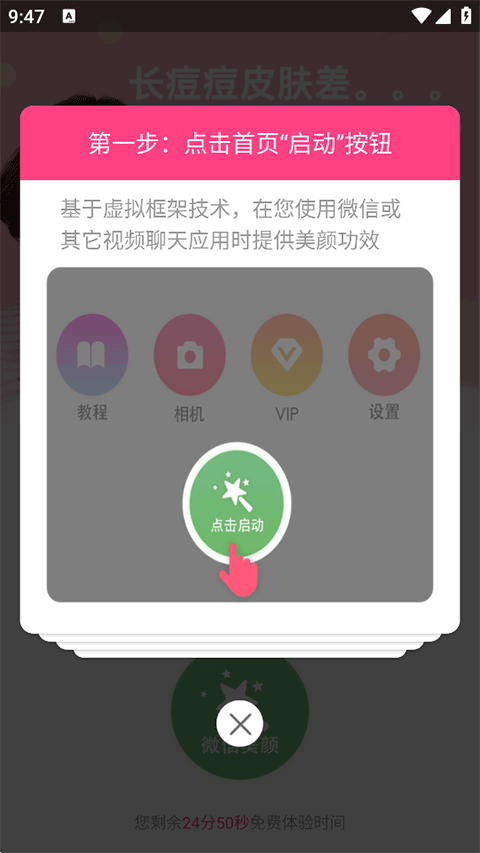 1、打开微微视频美颜助手,点击首页启动按钮;