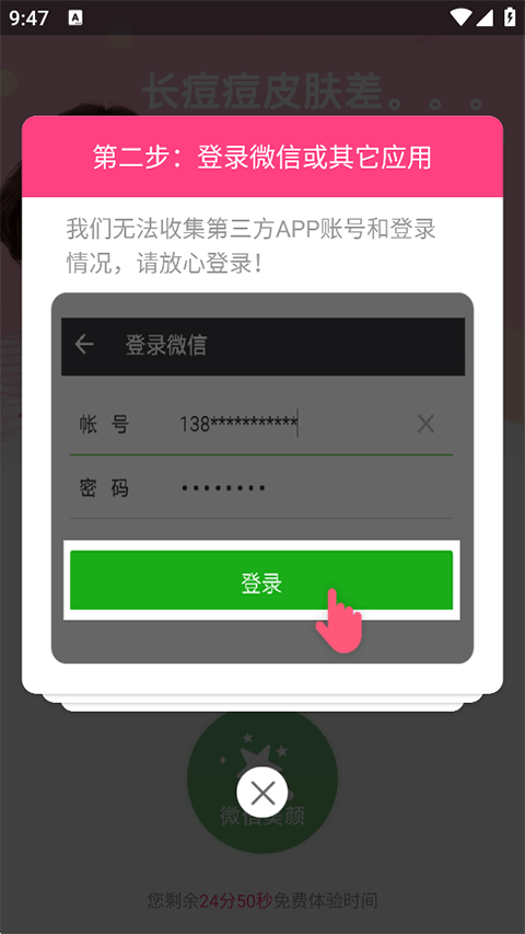 2、登录微信或其他需要美颜的视频应用;
