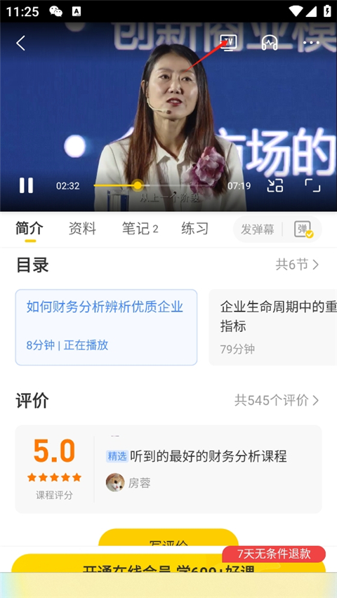 - 在课程播放页面,点击视频上方的“TV”按钮;