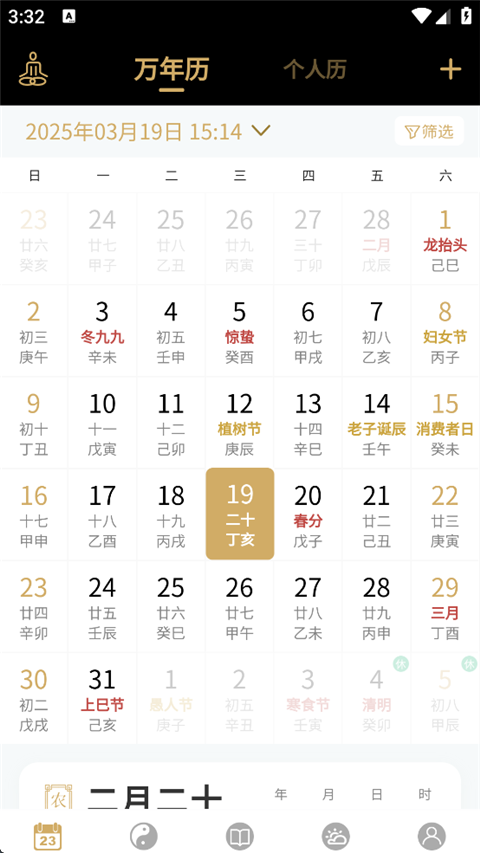 吉真万年历app是一款专为玄学爱好者打造的专业级万年历工具,不仅全面整合了国内外法定节假日与传统节日信息,便于用户提前规划出行与重要日程,更深度结合《钦定协纪辩方书》等传统历法典籍,精准呈现每日宜忌、五行属性、二十八星宿等关键择吉要素,帮助用户掌握每日吉凶趋势,趋利避害。