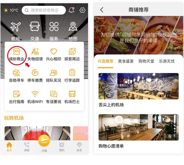 2、缤纷商业:精选机场内优质餐饮与购物品牌,打造高品质候机体验;
