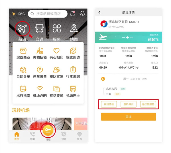 北京大兴机场官方app围绕旅客出行全周期,打造多项智能化服务:
