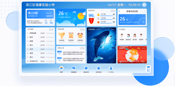 - 智慧班牌应用:作为班级信息交互中心,动态展示荣誉榜单、活动通知等内容,促进家校协同育人。