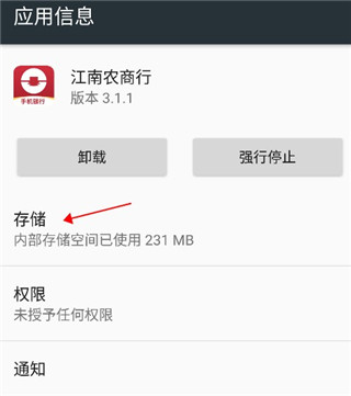 2、进入手机【设置】→【应用管理】→找到“江南农商行手机银行”,点击进入详细信息页面。