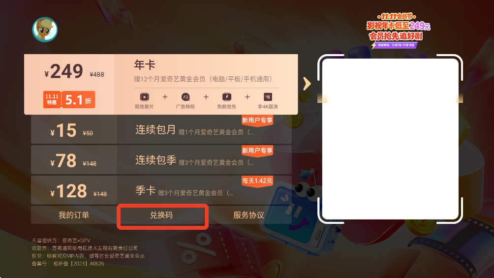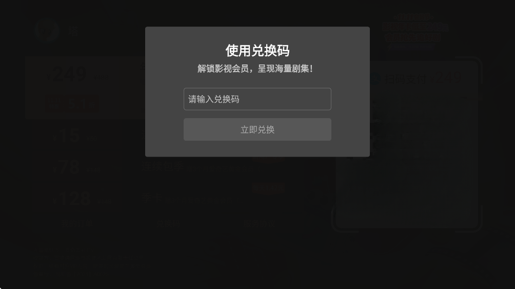 2. 在VIP充值选项下方,找到并点击【兑换码】入口,输入有效兑换码即可完成激活。