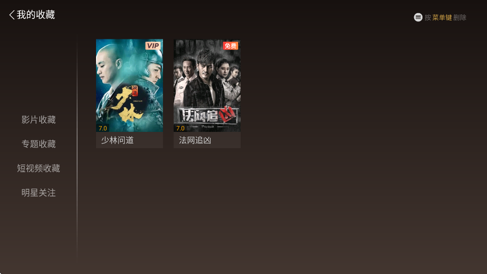 5. 此处集中展示所有已收藏的影片、专题、短视频及明星相关内容,便于随时回看。