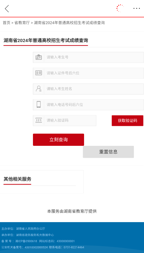 3. 输入考生姓名、准考证号等必要信息,即可查询本人高考成绩(仅限湖南省考生)。