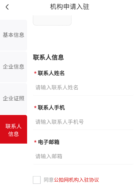5. 填写联系人姓名、手机号与电子邮箱。注意:标有红色星号(*)的字段为必填项。
