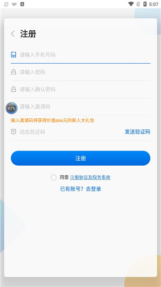 2、点击“去注册”按钮,进入注册页面(如图所示)。